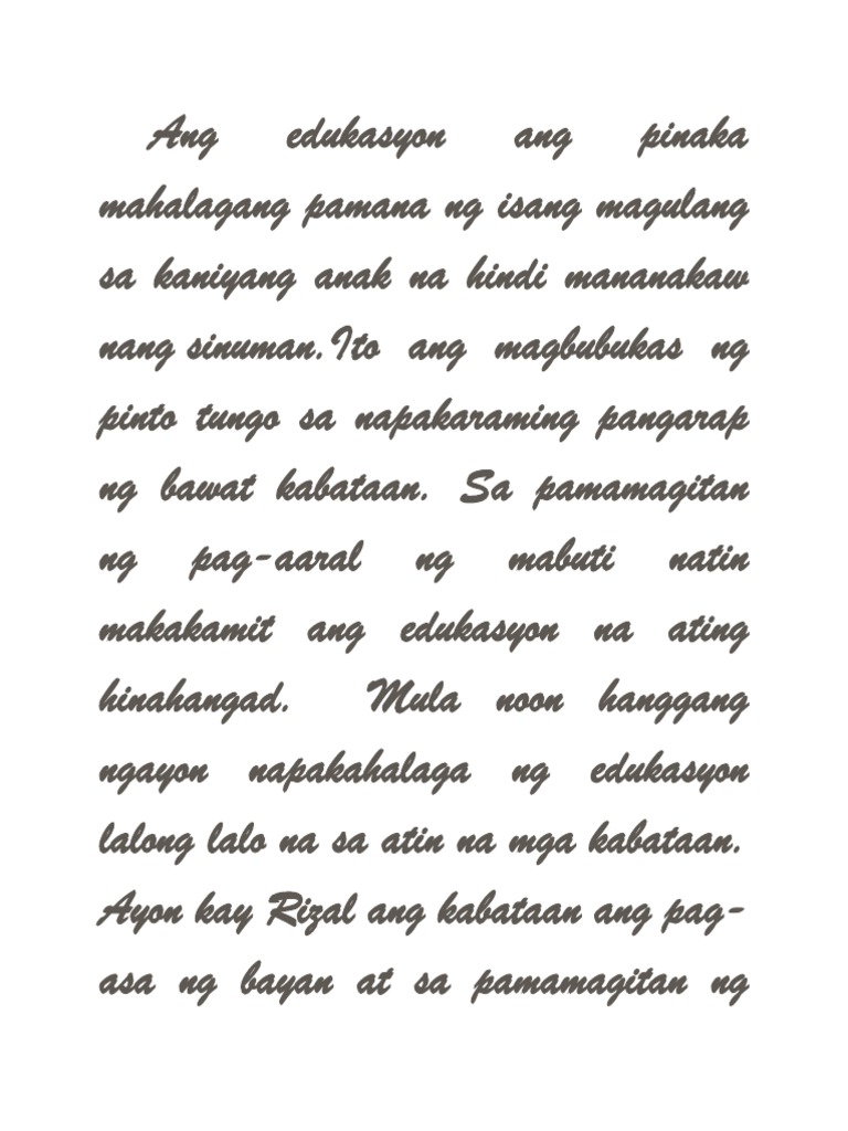 Ang Edukasyon Ang Pinaka Mahalagang Pamana Ng Isang Magulang Sa Kaniyang Anak Na Hindi Mananakaw Nang Pdf