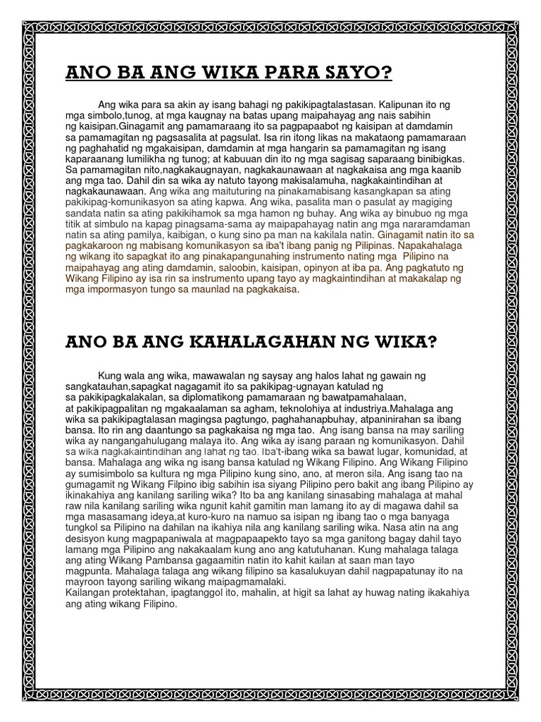 Bakit Mahalaga Ang Wika Sa Sarili Kahalagahan Ng Wikang Filipino